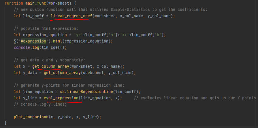 These are the main/core functions inside index.html javascript file that I have built for this snippet's purpose: